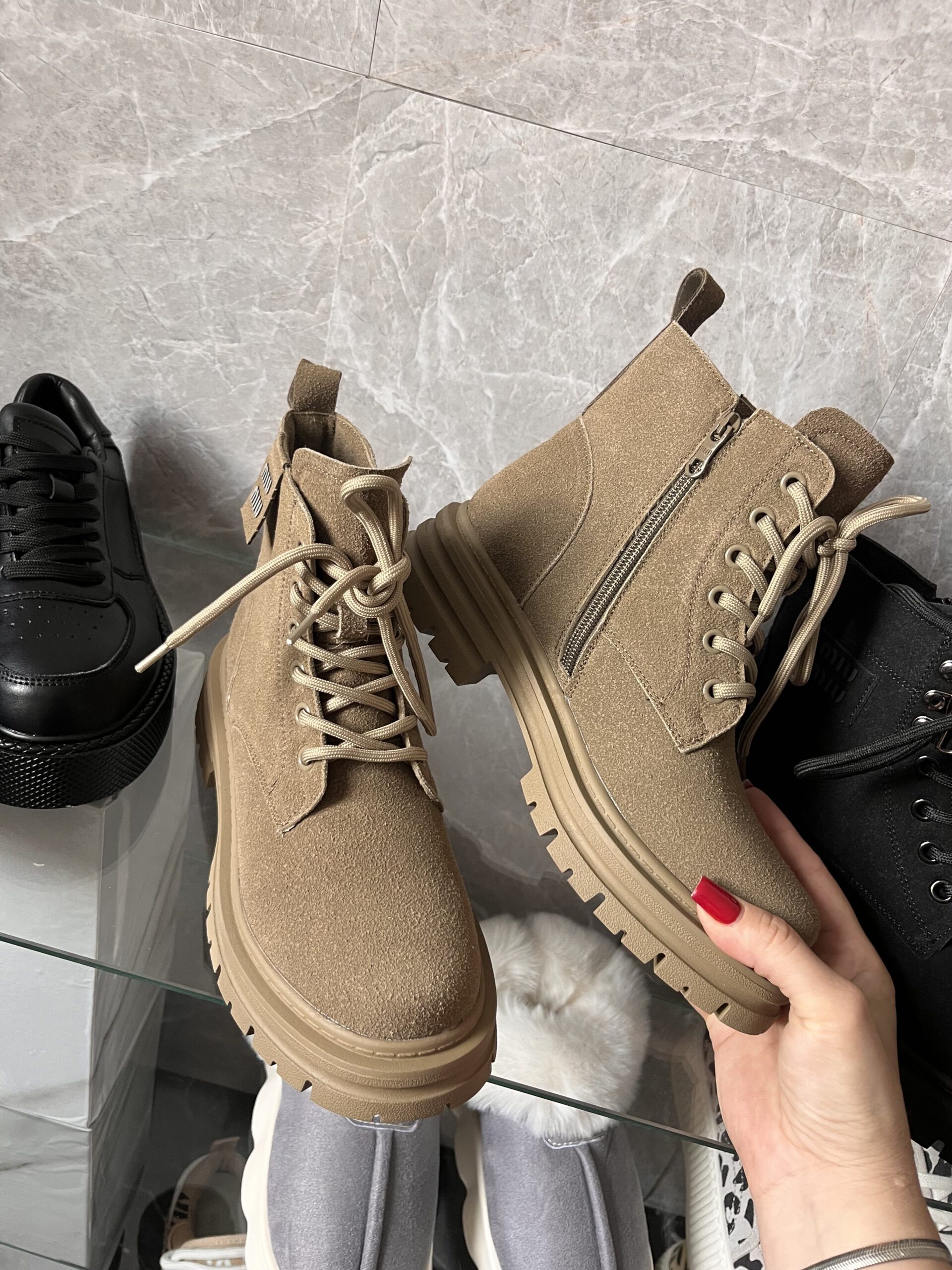 Материал верха — замша с пропиткой, ТПУ подошва 3,5 см, утеплитель велюр